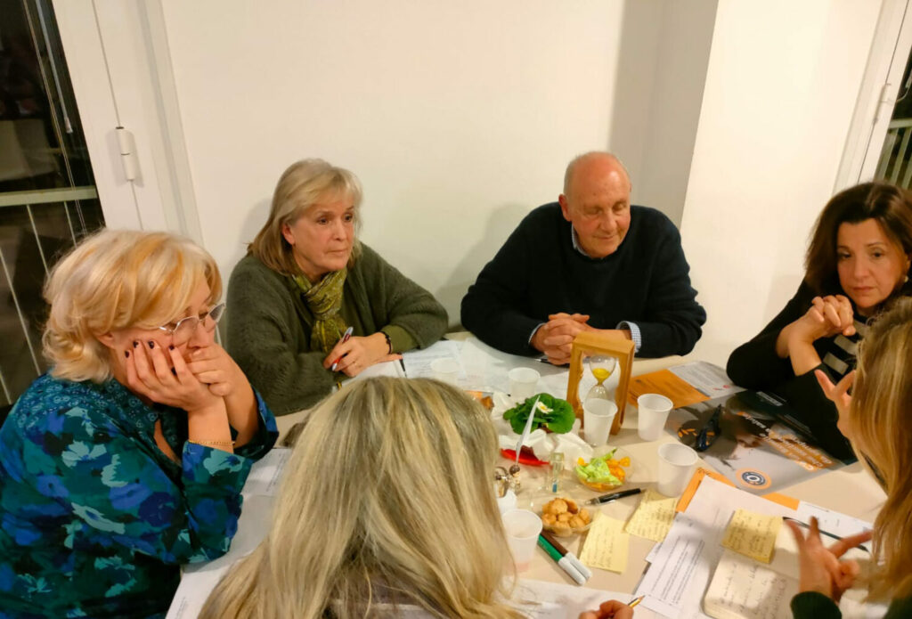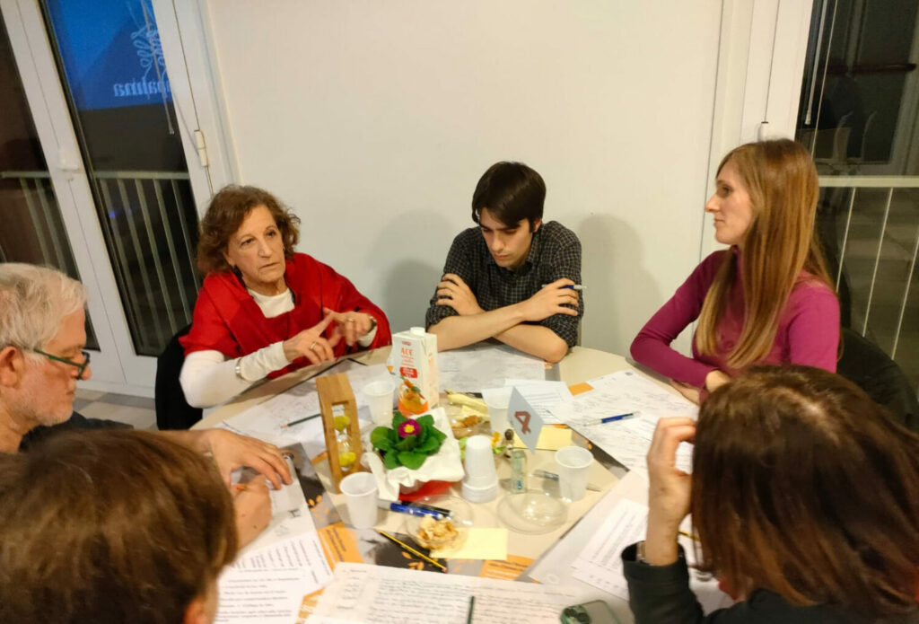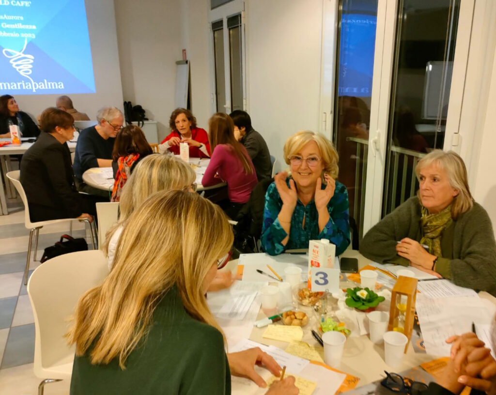 Ecco che a CasAurora abbiamo sperimentato una formula innovativa di conversazione organizzata con la modalità “World Cafè”,una metodologia di facilitazione in team che utilizza l’informalità (come l’atmosfera che ci si aspetta in un “cafè”) per innescare conversazioni costruttive. Inseriti in un ambiente intimo e accogliente, i partecipanti sono invitati a distribuirsi in piccoli tavoli e dare vita a conversazioni. Il principio di base consiste nella contaminazione e nell’incrocio dei saperi, delle esperienze di ognuno.