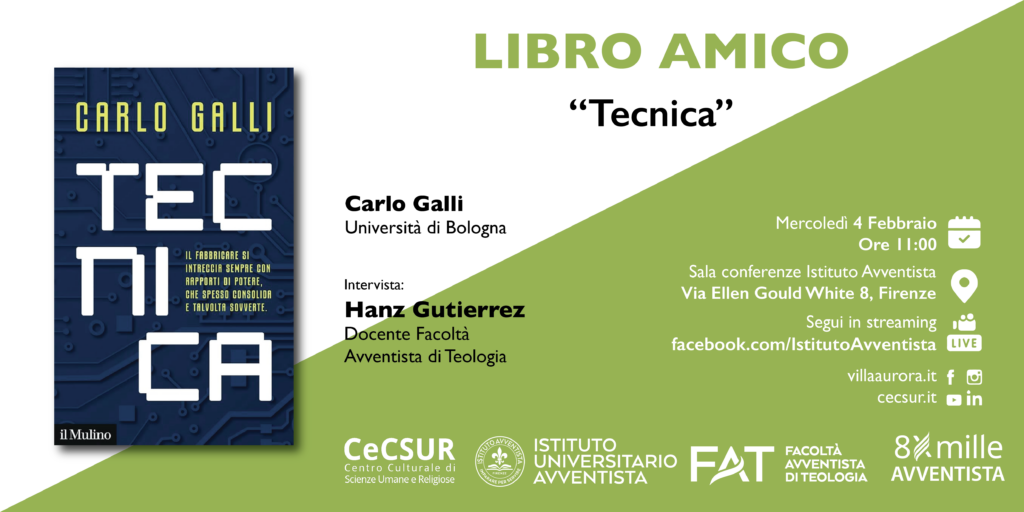 Mercoledì 4 febbraio, alle ore 11:00, l’Istituto universitario avventista di Firenze ospiterà un nuovo appuntamento di Libro Amico, il ciclo di incontri dedicato al dialogo tra libri, pensiero critico e attualità culturale. L’iniziativa è promossa dal CeCSUR, centro socio-culturale al servizio della città di Firenze, nato su iniziativa della Facoltà Avventista di Teologia.