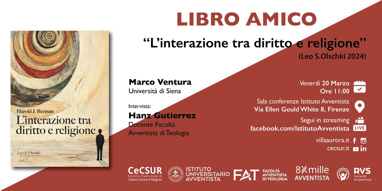 Mercoledì 4 febbraio, alle ore 11:00, l’Istituto universitario avventista di Firenze ospiterà un nuovo appuntamento di Libro Amico, il ciclo di incontri dedicato al dialogo
